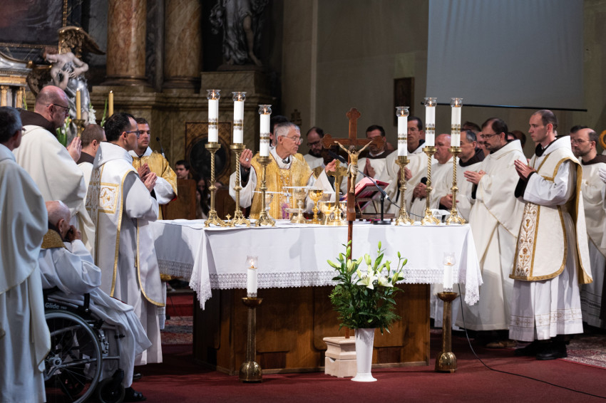 Majnek Antal a szentmise bevezetőjében figyelmeztetett, hogy ezen a nagy ünnepen „ne felejtsük el, mindannyiunknak van általános papi hivatása. Mindannyian, akik meg voltunk keresztelkedve, Jézus halálában és feltámadásában lettünk megmerítkezve.
