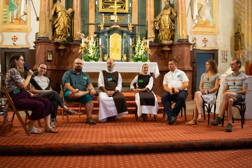 A közel 50 fős táborszervező csapat, köztük a közösség nővérei, papjai, laikus tagjai és fiatal barátai nem csupán emberi erejükre támaszkodtak, hanem egyenesen a Szentlélekre bízták a tábort és a részt vevő fiatalokat: a csoportnevekben a Lélek gyümölcsei kísértek el minket a héten. Apró kulisszatitok, hogy a szervezők az előadások, az imaestek és a délutáni fórumbeszélgetések témáit összehangolják, de a szentmisék olvasmányait nem igazítják a tábor témájához, hanem elfogadják az Egyháztól Isten aznapra szánt igéit. Fogadhatjuk a Szentlélek ajándékaként azt is, hogy a tábor napjaira kapott szentírási szakaszok szintén a béke útjára tanítottak minket.