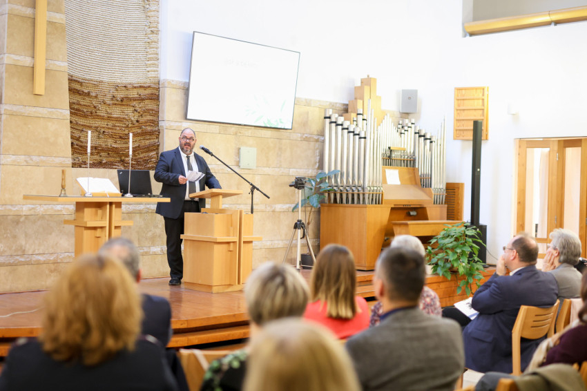 Sztehlo Gábor (1909–1974) gyermekmentő életútjáról tartott előadást Gregersen-Labossa György, az evangélikus egyház diakóniai bizottságának elnöke. Elmondta: Sztehlo felmenői között számos lelkész volt, elkötelezettségét családjából hozta. Teológusként Finnországban is tanult, ott ismerte meg a helyi ébredési mozgalmat. Lelkészként templomépítő, népfőiskolai szervező volt. Már ekkor a sok szempontból elhanyagolt néprétegek felé fordult. Emellett kórházlelkészként is szolgált. A háború után a zugligeti Pax otthonban kezdte a gyermekek mentését, ez a kezdeményezés formálódott a Gaudiopolisszá, ahol neveléssel, traumaoldással foglalkoztak, mindezt egy sajátos önkormányzatra épülő, demokratikus rendszerben. Sztehlo 1950 után a kommunizmus által üldözötteket segítette, igyekezett a „kezek evangéliuma” (diakónia, vagyis szeretetszolgálat – a szerk.) szerint menteni, ami menthető. 1961-ben meglátogatta Svájcban a családját, betegség miatt kellett külföldön maradnia. Az előadó rámutatott, a mai evangélikus diakóniai intézményrendszer a Sztehlo Gábor által kialakított szervezésekre épül.