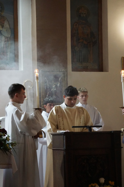 A koncelebrált ünnepi szentmisén liturgikus szolgálatot teljesítettek az iskola diákjai, akik az asszisztenciában és az éneklésben egyaránt szerepet vállaltak.