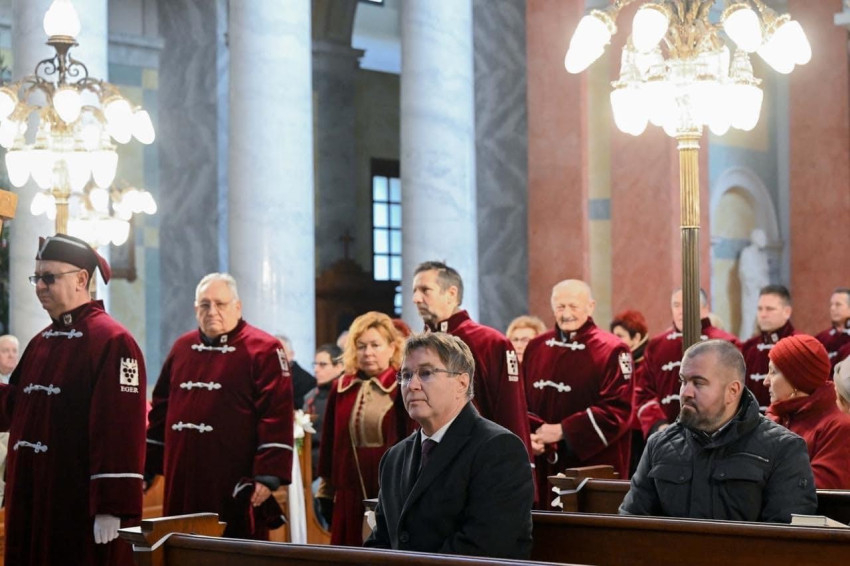 A szentmise végén a helynök a papság jelen lévő képviselőivel együtt megáldotta az oltár elé helyezett borokat.