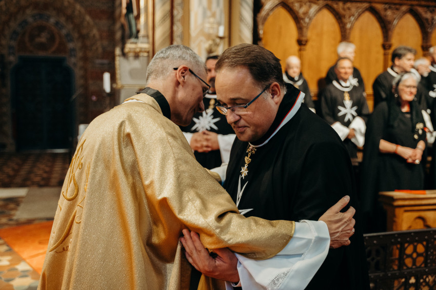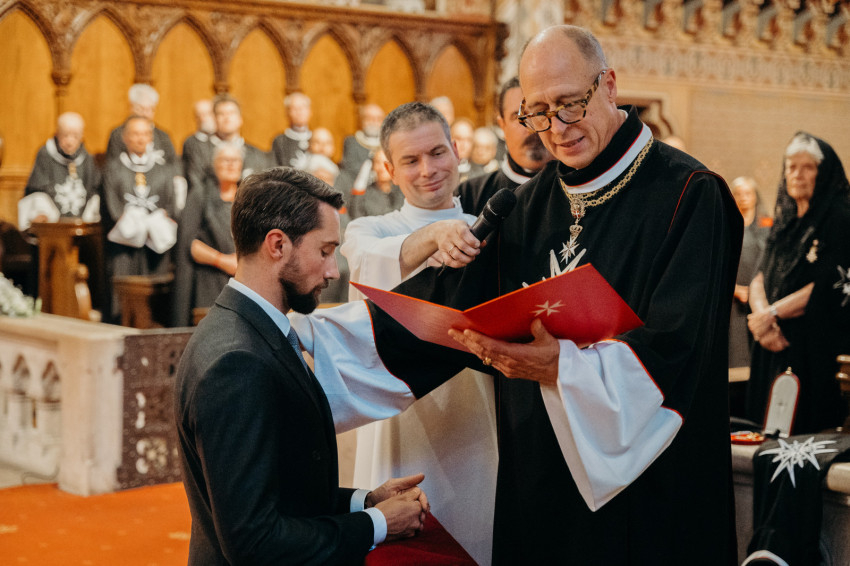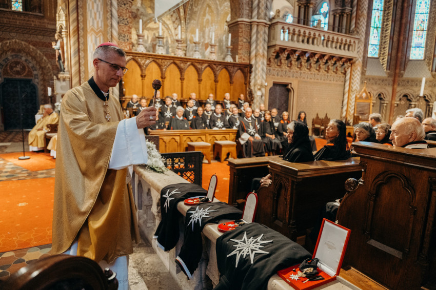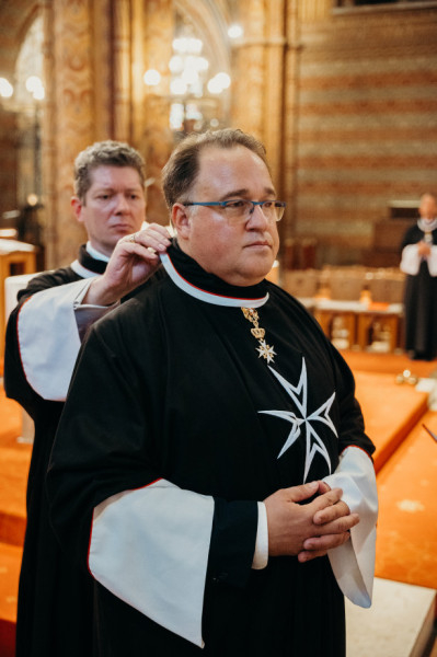 Az avatást követően folytatódott a szentmise, végül az áldás és elbocsájtás előtt elhangzott a Máltai Lovagrend imája. Ezután Martos Levente Balázs püspök néhány szóval visszaidézte az avatási szertartás azon pillanatát, amikor a leendő máltai lovag letérdel a rendi elöljáró előtt.