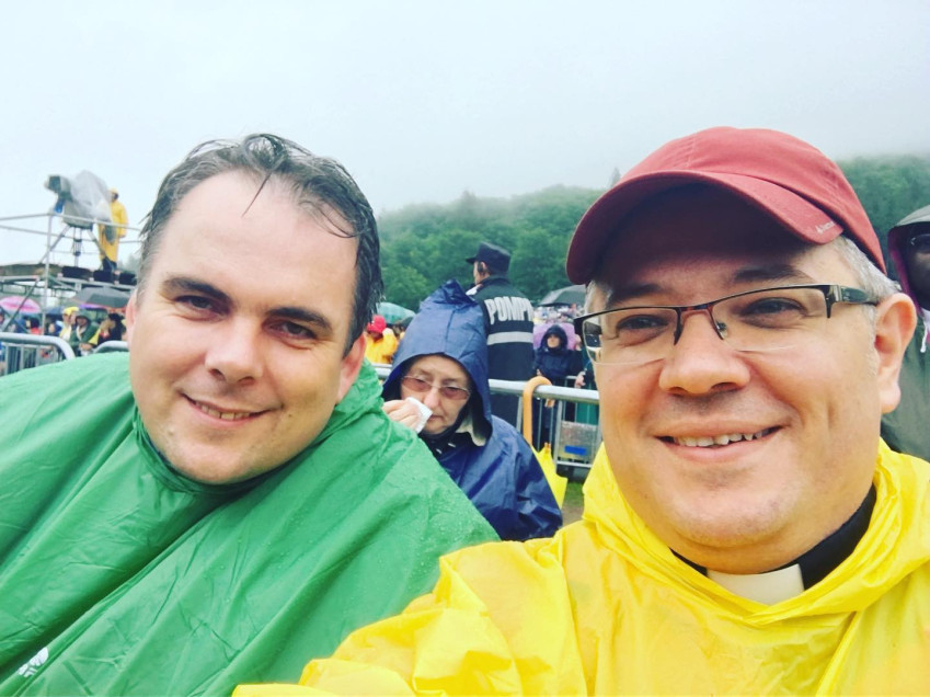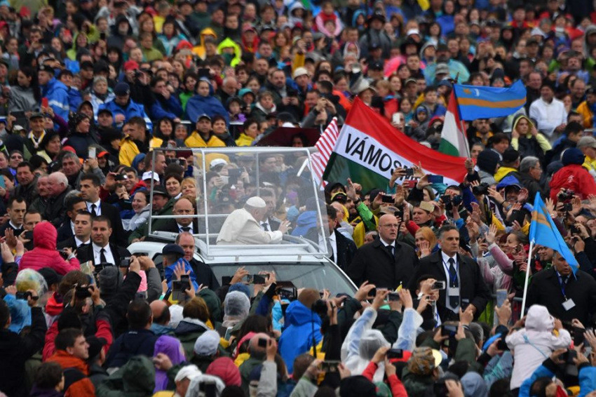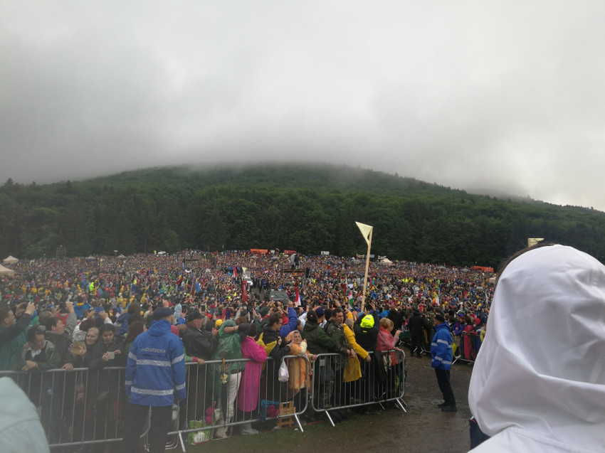Borúra derűt hozott szó szerint is, hiszen érkezésekor sűrű köd takarta el a szentmisére összesereglett hívők közösségét, ami a pápa „nyeregbe szállása” után pillanatok alatt felszállt. Énekelték már azon a helyszínen, hogy „Felkelt a napunk”, de aki a pápai misére eljött, ezt meg is élhette. Eleinte amiatt is izgultam, hogy a hátsó szektorokba általunk beigazított csoportok az oltárig sem fognak látni, és az oltártól sem lesznek láthatók, az órákon át zuhogó esőt és a nyomában kialakult sártengert hiába állta ki és járta meg a tömeg,
