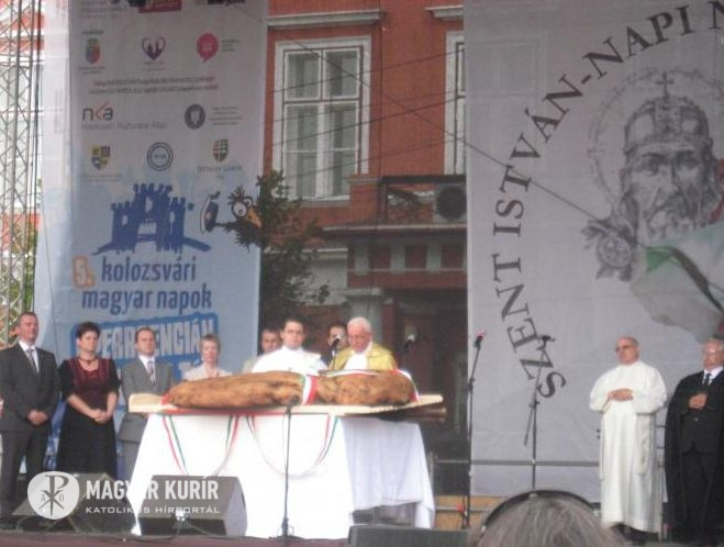 Augusztus 20-án több száz összesereglett ember jelenlétében áldották meg Kolozsvár főterén, a Mátyás király-szoborcsoport közelében felállított színpadon azt a kétszáz kilós, rekordméretű kenyeret, melyet Szolnokon sütöttek.