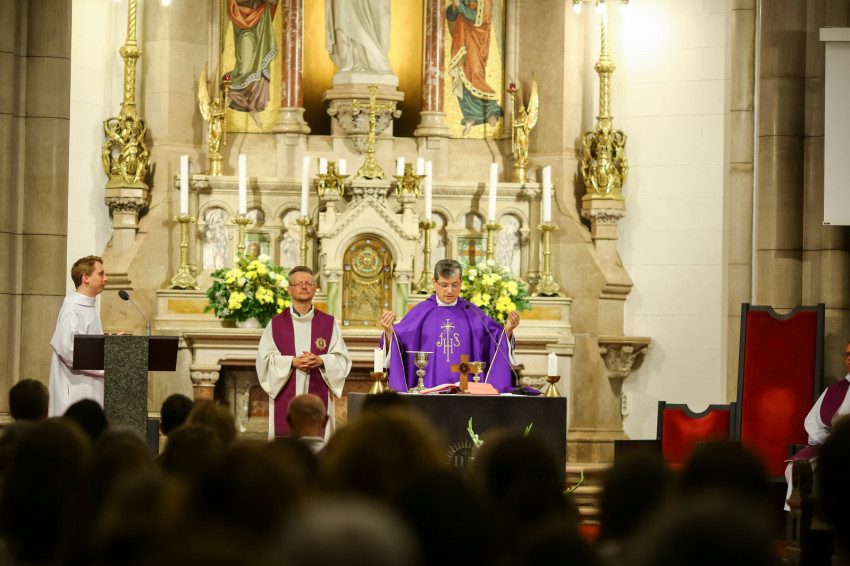 Bár az ország több városában mutatnak be gyászszertartást az augusztus 6-án elhunyt jezsuita szerzetesért, és Hildesheimbe is nagy számban utaztak temetésére tisztelői, a jezsuita templom is teljesen megtelt a Péter atyáért felajánlott szentmisén. Nagy számban érkeztek paptestvérek és hívek a Szeged-Csanádi Egyházmegyéből, több rend szerzetesei és szerzetesnővérei, különböző generációk, akik Péter atya életéhez egy-egy magyarországi településen kötődtek.