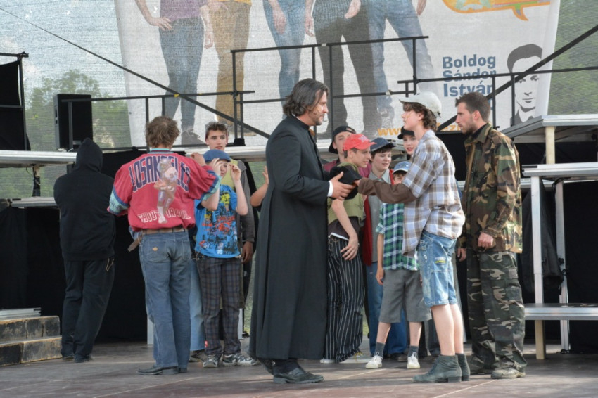 Szombaton a szentmise után az ünnep folytatásaként a közös szórakozás következett: a „Nyiss ránk!” Fesztivál színpadán a komáromi Magyarock Dalszínház felnőtt és gyermek színészei bemutatták a Gyermekek fénye című rockoperát, amely Don Bosco élete nyomán, születésének bicentenáriumára készült. A művészek előadásában drámai erővel elevenedtek meg a szalézi rend alapítója életének egyes jelenetei, lelkesítően közvetítették Bosco Szent Jánosnak a másik befogadására épülő lelkiségét.