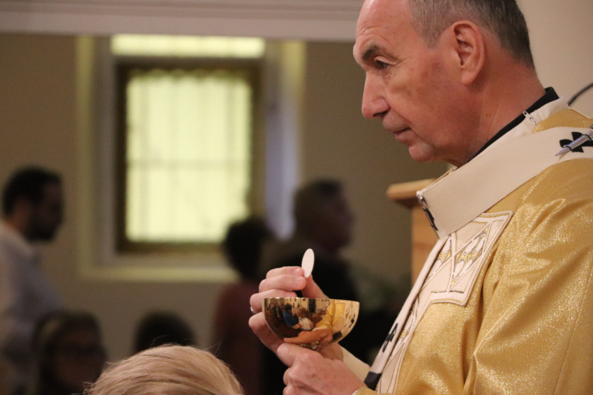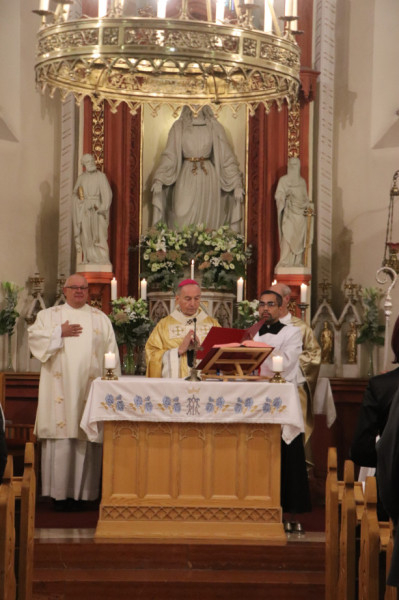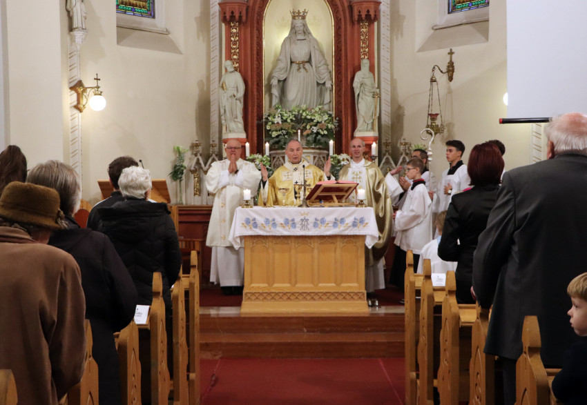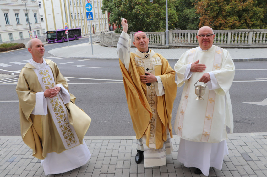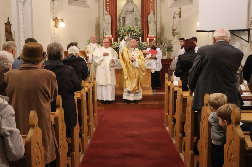 A búcsúi szentmise kezdetén Udvardy György érsek megáldotta a jelenlévőket, majd a templom előtt a megújult tetőt, végezetül az orgonát hintette meg szenteltvízzel.