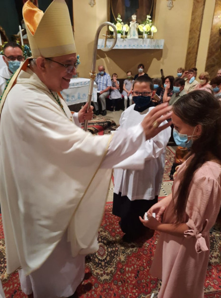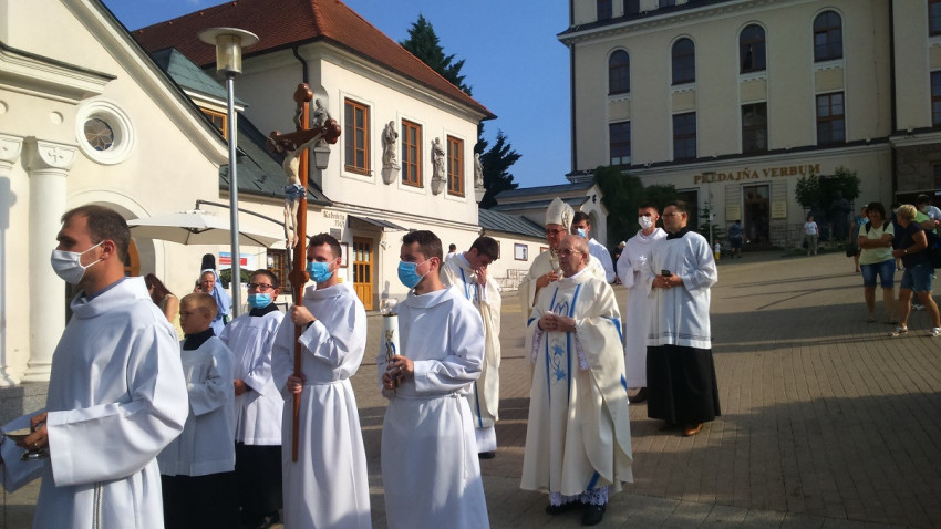 Ezt követi a magyar szentmise, amelyet idén Orosch János nagyszombati érsek mutatott be oltártestvéreivel együtt. A kegytemplom zsúfolásig telve volt a vidékről és távolabbról is érkező zarándokokkal. Voltak, akik a Mária Út zarándokaiként, hagyományosan gyalog zarándokoltak a hegyeken keresztül. Sok kisgyermekes család érkezett. A főpásztor ezt megragadva többek között arra buzdított, hogy ne adjuk fel a hitet és hűen ragaszkodjunk a Szűzanyához: „Sokan közületek kisgyermekkorotok óta hitben különféle búcsújárásokban vesztek részt, és bizonyára szívből teszitek ezt mindmáig, mert megtapasztaltátok a Boldogasszony jóságát, anyai oltalmát. Kérlek benneteket, ezt a tiszteletet, gyermeki ragaszkodásotokat, adjátok át a családjaitokban a következő generációknak is. Mert ahogy Mária Jézushoz vezette elődeinket, úgy minket is Szent Fiához akar vezetni. Szeressük őt, ragaszkodjunk hozzá, őrizzük meg hitünket, ne adjuk fel hagyományainkat, tartsuk meg ami keresztény és magyar!”