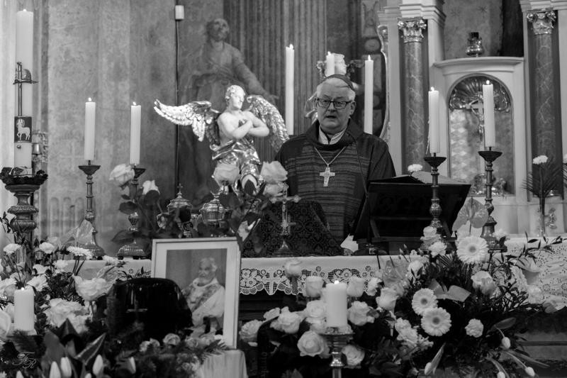 A gyászmisét Spányi Antal székesfehérvári megyéspüspök celebrálta, nagy létszámú papi asszisztenciával, ministránsok hosszú sorával.