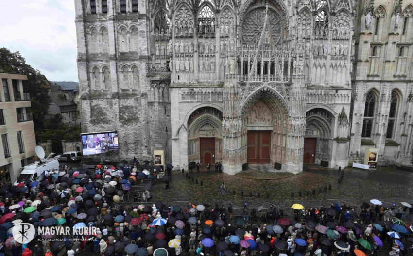 A gótikus épületben és az előtte lévő téren mindegy kétezren vettek részt az esővel dacolva Jacques Hamel búcsúszertartásán.