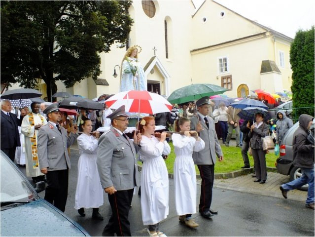 Az ünnepi szentmise után körmenetet tartottak, amelyen az eső ellenére is több százan kísérték a Mária-szobrot.