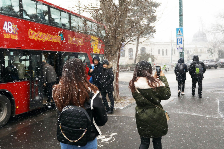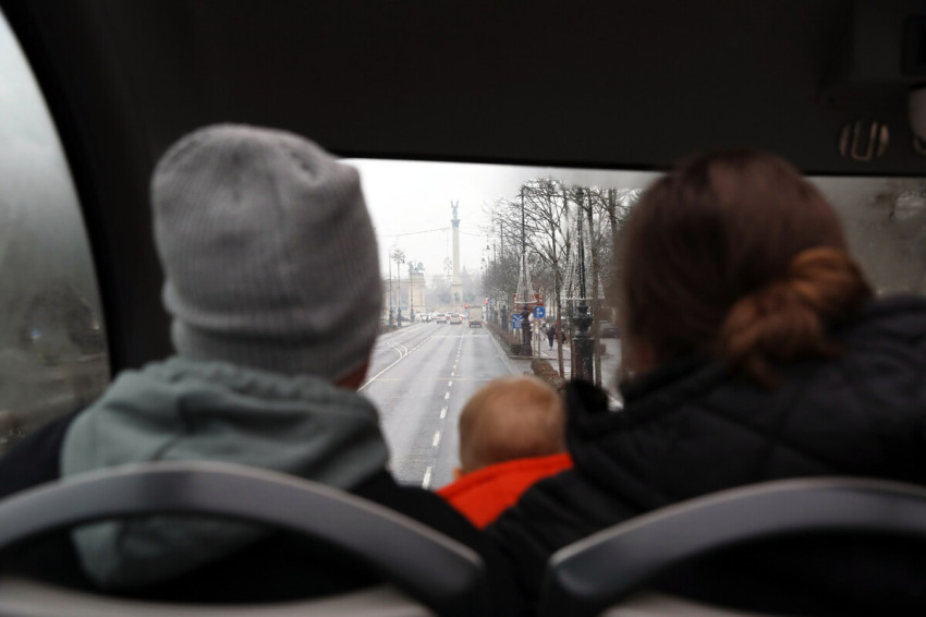 A zord időjárás ellenére több mint ötvenen vettek részt a programon. Babakocsiban tolt, tipegő vagy kisiskolás gyerekkel, házastárssal, testvérrel, egyedül, mindannyian kíváncsian, és (az Ukrajnából jövőket kivéve) nagykabátban is dideregve. A havazás nem hiúsította meg teljesen a túra „hop-off” részét: a Hősök terén senkit nem kellett győzködni, hogy néhány perc nézelődés és egy csoportkép erejéig leszálljon a járműről. A zsebekből előbújó telefonok és a kapucnik alól is kilátszó lelkesedés jelezte, hogy a Városliget és a Hősök tere látványa megéri a didergést.