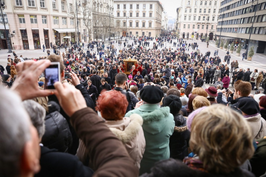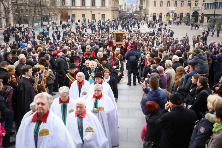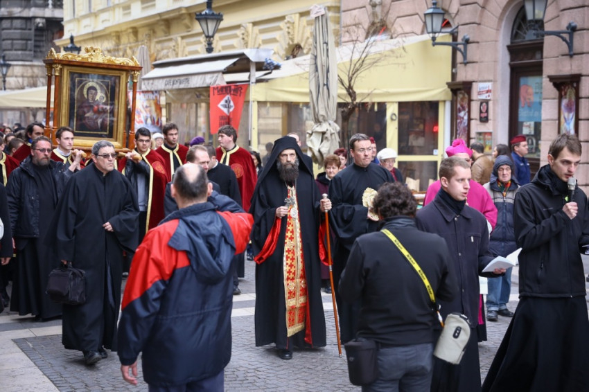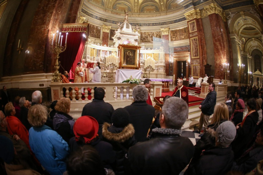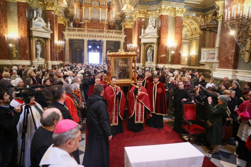 A Budapestre érkezett Istenszülő-kegyképet Kocsis Fülöp hajdúdorogi megyéspüspök vezetésével ünnepélyes processzió kísérte a Duna-parttól a Zrínyi utcán keresztül a bazilikáig, ahol Snell György esztergom-budapesti segédpüspök, a bazilika plébánosa fogadta.