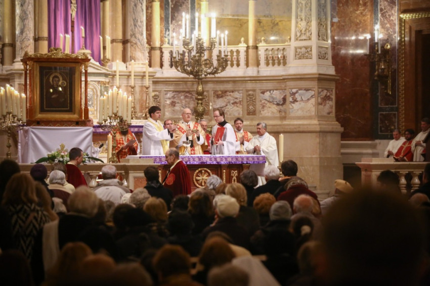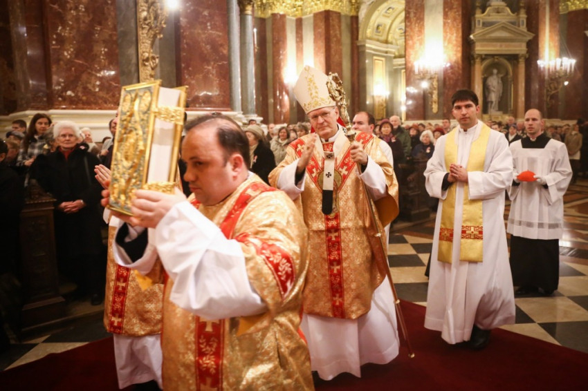 Erdő Péter bíboros Kocsis Fülöp hajdúdorogi megyéspüspök, Keresztes Szilárd nyugalmazott hajdúdorogi megyéspüspök és Snell György esztergom-budapesti segédpüspök, a bazilika plébánosa koncelebrálásával mutatott be ünnepi szentmisét a zsúfolásig telt bazilikában.