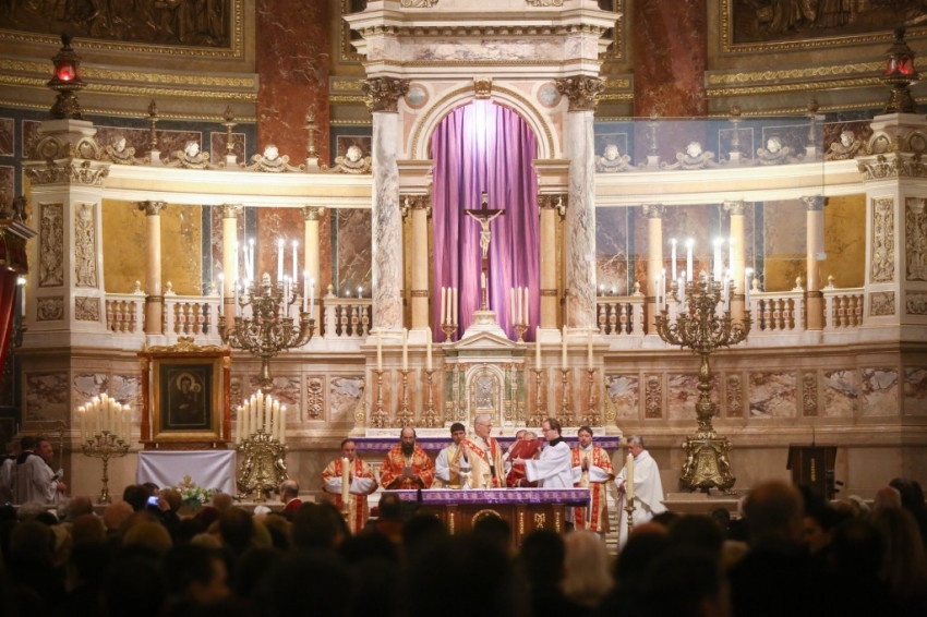 Majd hozzátette: mégsem mindegy, hogy hitetlenül elutasítjuk-e Krisztus szeretetét. Aki nem alakítja életét az ő példájára, az önmagát ítéli el. Krisztus keresztje Isten szeretetének jele az emberiség iránt. Ez az a szeretet, amely erősebb, mint a halál. Az irgalmas Isten személyes szeretete örök életünk és boldogságunk biztosítéka. Ez a hitünk lényege, és erre emlékeztet a feszület otthonainkban, templomainkban és mindenütt.