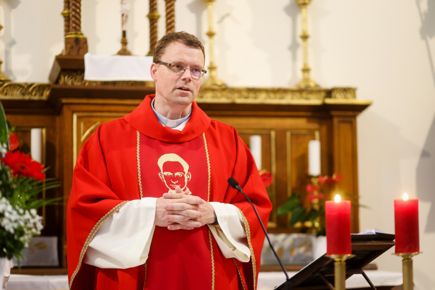 Boldog Sándor István itt élt, mindenki ismerte a környéken, néhány éve az ereklyéi ide kerültek – mondta el Andrásfalvy János a szentmise elején. A liturgiát elsősorban a békéért, a lelki tisztaságból fakadó békéért ajánlották fel, amelynek a vértanú is munkálója volt.