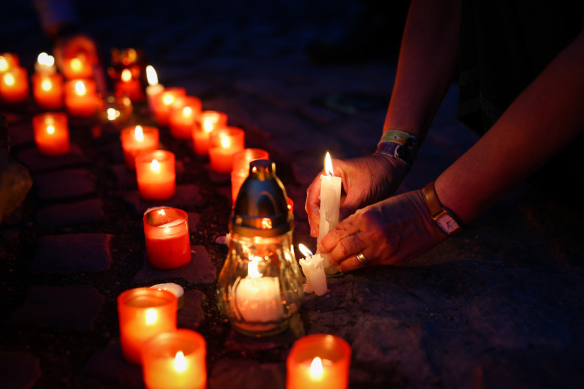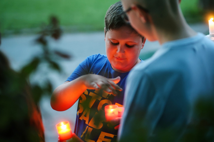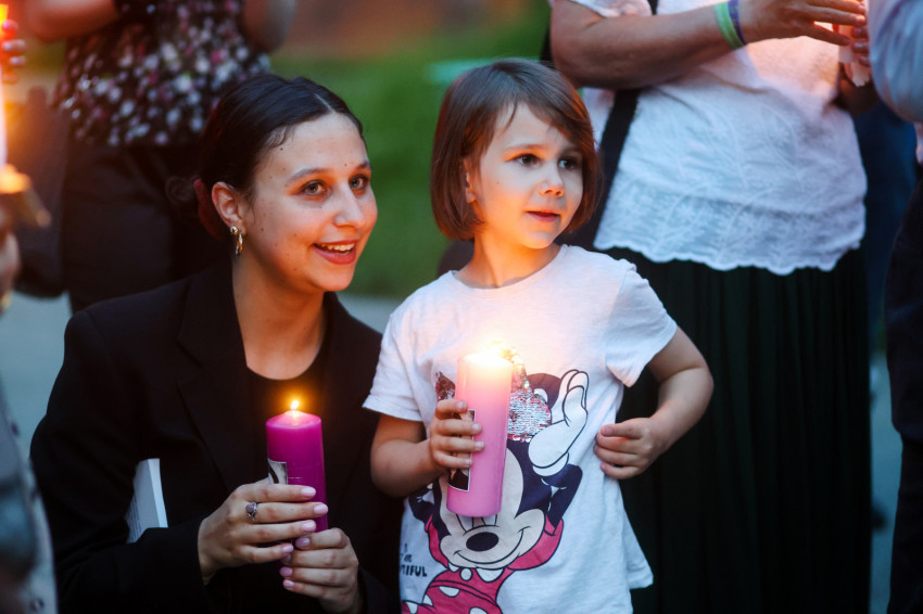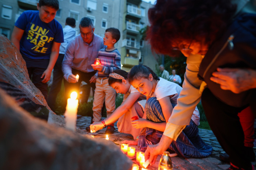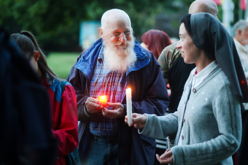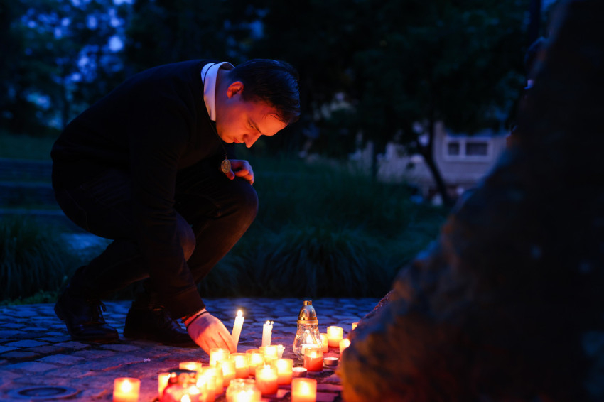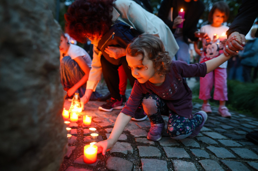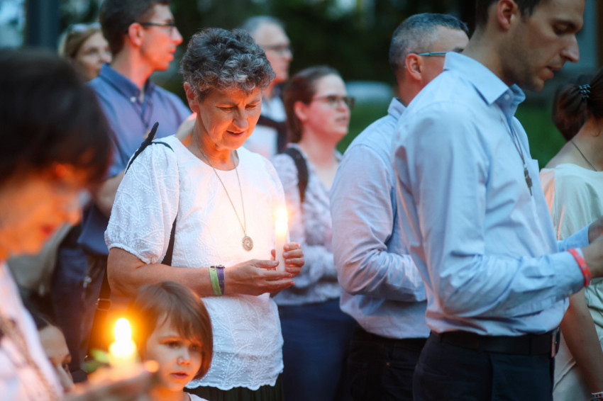 Ezután gyertyás menet indult a közeli Sándor István parkba, tízemeletes lakóházak közé, ahol a közösség imádkozott, majd elénekelte a Te vagy földi éltünk vezércsillaga kezdetű népénekünket és a Szózatot. Ezalatt a hívek gyertyáikat elhelyezték az emlékhely előtt. A templomba visszaindulva felhangzott a Boldogasszony anyánk énekünk.
