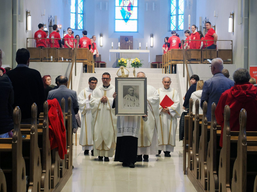 A híveket pedig arra kérte, hogy imáikban emlékezzenek meg hazánk utolsó hercegprímásáról, akit 80 évvel ezelőtt szenteltek fel veszprémi püspöknek. Az ő alakja az érsekség munkásságára, oktatási és hitéletet támogató tevékenységére is felhívja a figyelmet az évforduló kapcsán. Ennek megfelelően Udvardy György érsek elhelyezte a főszékesegyházban a korábbi veszprémi püspök, Mindszenty József bíboros arcképét.
