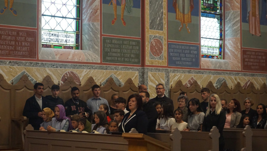 A tanodás gyerekek egy-egy zsoltárral is készültek erre a napra. Volt köztük olyan kicsi is, aki alig-alig érte fel a mikrofont, mégis zengett hangja az imádság elmondása közben.