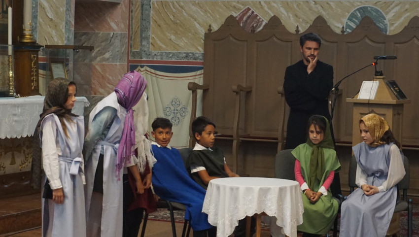 A selyebi harmadik osztályosok drámajátékot is megtanultak: Jézus találkozása a kenethozókkal bibliai jelenetét mutatták be. Ezzel készülnek a jövő vasárnapi elsőáldozásukra.