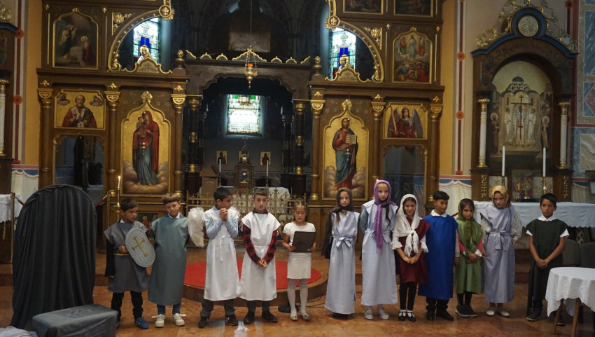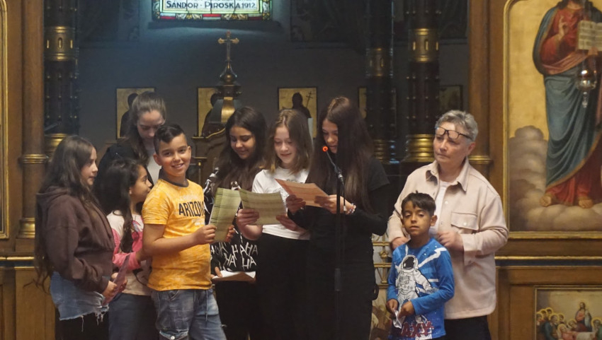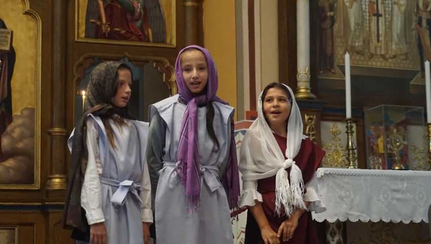 Orosz Atanáz püspök egy-két feladat megoldására is hívta a gyermekeket: olyan ikonokat, ábrázolásokat kellett keresniük és összeszámolniuk szerte a templomban, amelyen a feltámadt Krisztus, illetve az Istenszülő látható.