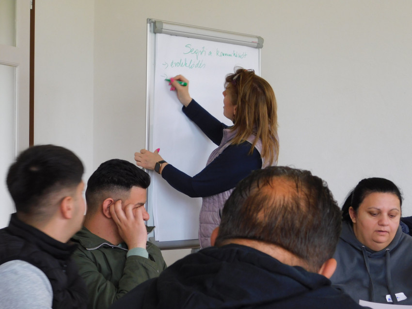A kommunikációs és közösségfejlesztő tréningen különböző interaktív játékok és feladatok segítségével ismerték meg a résztvevők a kommunikációt segítő és nehezítő tényezőket. Amellett, hogy sikerült rávilágítani a kommunikáció fontosságára, sokrétűségére, a jelenlevők többek között reflektáltak arra, hogy ami számukra egyértelmű, az nem biztos, hogy a másiknak evidens; hogy a személyesség mennyire fontos, és hogy a türelem elengedhetetlen egymás megértésében. Fontos tudatosítani, hogy mindannyian mások vagyunk, de ez nem csupán konfliktusokhoz, hanem remek lehetőségekhez is vezet. Beszélgethettek egymással négyszemközt, kiscsoportban és nagy körben is. „Szeretet. Az van itt” – hangzott el.