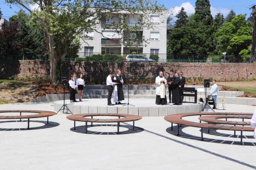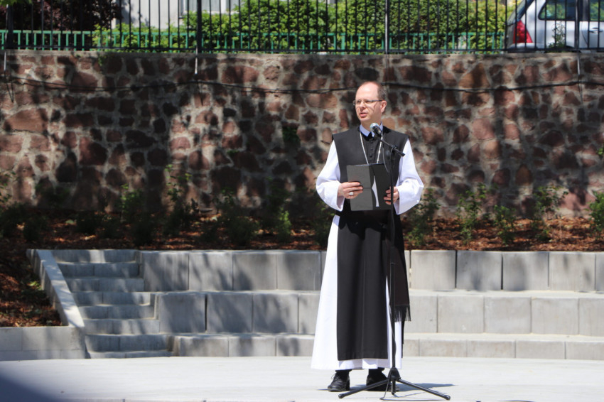 Köszöntőbeszédében a zirci apát visszatekintett a központ keletkezésének történetére. Elmondta, hogy az intézményt egy 2003-ban bezárt általános iskola épületében alakították ki. A fejlesztés kezdete egy évtizedre nyúlik vissza, de néhány évvel ezelőtt kapott új lendületet. Bérczi Bernát méltatta a kreativitást és a minőségi, színes teret, melyet a tervezők megálmodtak az itt táborozók számára, akik már ezen a nyáron birtokba vehetik az épületet és a hozzá tartozó területet.