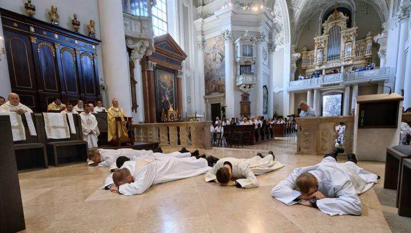A szentbeszédet követően a jelöltek engedelmességet fogadtak főpásztoruknak. A Mindenszentek litániája alatt arca borulva imádkoztak kérve a kegyelmeket szolgálatukhoz.