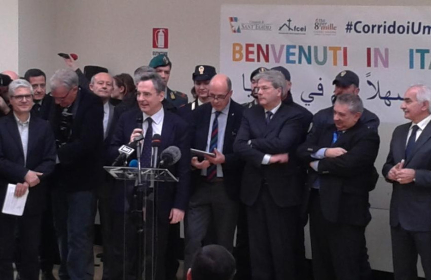 A kezdeményező egyházi közösségek képviselői mellett Paolo Gentiloni olasz külügyminiszter várta a repülőtéren a menekülteket. Azon az útvonalon érkeztek, amely Európában az első humanitárius folyosó, vagyis az első kísérlet arra, hogy kimentsék a civileket a szíriai háború poklából, elkerülve, hogy életüket kockáztatva, embercsempészek prédájaként a tengeren keljenek át a kontinens felé.