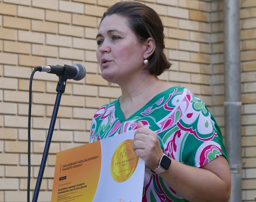 Az elismerés jelentőségéről és az azt megalapozó kezdeményezésekről az igazgatónő a jelenlévőknek elmondta: az iskola mindennapjaiban számos családbarát kezdeményezés kap helyet. A saját játszótér és a nyitott udvar egész évben a családokat szolgálja, a tanév során pedig az iskolai és templomi ünnepek, valamint a kulturális programok a kollégák családtagjai előtt is nyitottak.