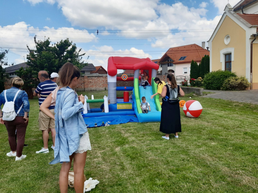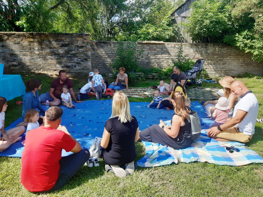 Ezt követően a plébánia udvarán „kerekítő baba-mama” foglalkozáson vehettek részt a kisgyerekek szüleikkel, nagyszüleikkel.