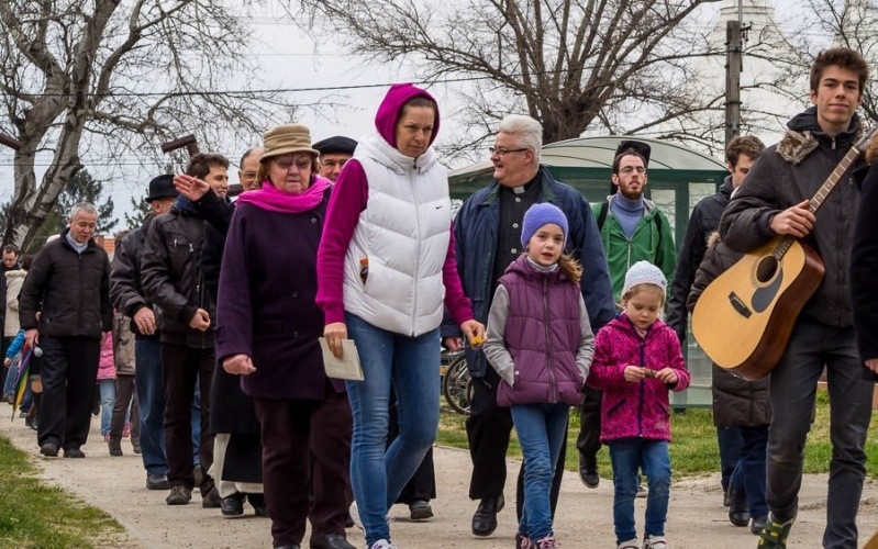 Volt olyan család, amelyből három generáció is jelen volt. Az állomásokat a gyermekek jelenítették meg a tanösvény egyik tisztásán, a szülők olvasták fel az elmélkedéseket. A főpásztor záró szavai és áldása után a családok csendben vonultak el az imádságos elmélkedés helyszínéről.