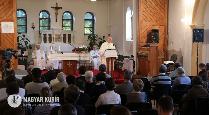 A Magyar Katolikus Családegyesület szervezte összejövetelt szentmise zárta, melyet Bíró László püspök a résztvevő paptestvérekkel, köztük Szabó Ferenc SJ atyával mutatott be. Bíró László a bátorítás, buzdítás hangján szólt szentbeszédében a résztvevőhöz. Az örvendező Máriát, a „boldogság asszonyát” állította példaképül a résztvevők elé, és Ferenc pápához kapcsolódva arra buzdított, hogy mi is legyünk a remény emberei, örvendező keresztények. Mi ad okot az örömre? – tette fel a kérdést. Megszületett az, akit évszázadok vártunk, megérkezett az Úr – ez Mária örömének oka, és ez a keresztény ember biztos reménye. Ő az Úr, és ő Emmánuel – mondta Bíró László. Nemcsak az érkező, hanem a velünk lévő Isten. Ezt az örömünket senki nem veheti el, ezt minden felszíni küzdelem ellenére tudnunk kell – figyelmeztetett a püspök. Ugyanakkor rámutatott: Mária öröme tartós, belső öröm. Ezt hívja nyelvünk boldogságnak. Soha nem szabad elfeledni, hogy a belső öröm adja meg a boldogságot.