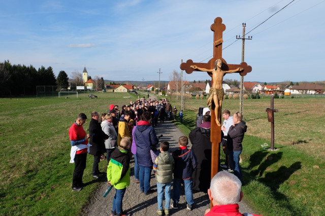 A Szűzanyát kísérve elmélkedtük végig a keresztút állomásait, felfelé haladva a stációk mentén. Minden állomáson Mária abban erősített minket, hogy életünk keresztjeit el kell fogadnunk, Jézussal együtt kell hordoznunk abban a tudatban, „hogy ennek így kell lennie”. Nagy ajándék volt számunkra, hogy a magyarlaki testvérek is csatlakoztak hozzánk, így valóban a legkisebbektől az idősekig egy családot alkotva élhettük át ezt a keresztutat. Az út végén, a magyarlaki szőlőhegy gyönyörű környezetében a helyiek vendégszeretetét is élvezhettük a gyerekek és mindannyiunk örömére.