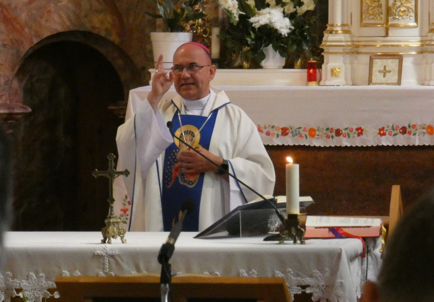 Délelőtt 11 órakor Marton Zsolt püspök celebrált szentmisét. Szentbeszédében a püspök kiemelte, hogy a kánai menyegzőn, ahol Jézus első csodatételének lehetünk tanúi, nem véletlenül Mária, Jézus édesanyja kéri Fiát, hogy cselekedjen. Ez a történet egyrészt azt üzeni számunkra, hogy Jézus nemcsak a templomban van velünk, hanem életünk fontos eseményeinél éppúgy jelen van, mint a hétköznapjainkban. Másrészt arra bátorít, hogy Szűz Mária hathatós közbenjárását is kérhetjük, hogy imáink meghallgattatásra találjanak.