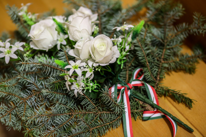 A hegyvidéki Trianon Harangja Társaság tagjai Galla János ügyvivő vezetésével koszorút helyeztek el a szentmise végén az oltár előtt a 120 éve született Esterházy János felvidéki mártír sorsú politikus képe előtt.