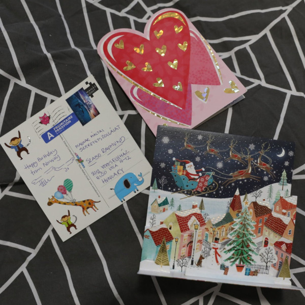 Az unokatestvérei írtak kedves üzenetet neki, lerajzolták az egész családfát, és küldtek magukról sok-sok fényképet is, a hátukra gyöngybetűkkel ráírva, hogy hol készült és kiket ábrázol.