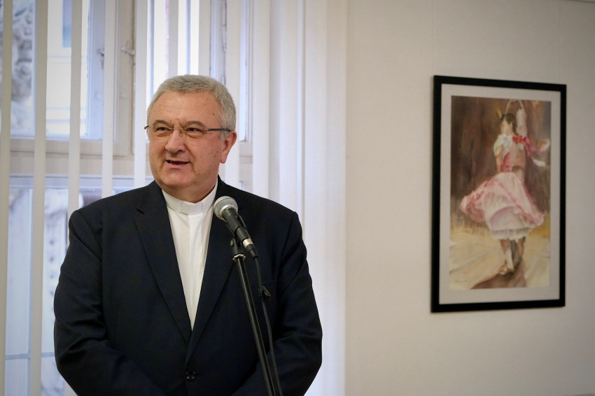 „Rácsodálkozunk egy-egy szép alkotásra, vagy lehetőségünk adódik rá, hogy egy művésznek hosszabb életszakaszában keletkezett műveit is együtt láthassuk, és ez számunkra egészen sokat mond el az ő világnézetéről, életszemléletéről, a transzcendenshez való viszonyáról. Nagy dolog, ha valaki a művészetekben alkot, de még nagyobb dolog, ha ezt a tudását másoknak is tovább tudja adni. Nemcsak fölfedezi a diákjaiban rejlő képességet, hanem szakmai segítséget is ad számukra” – fogalmazott a főpásztor, köszönetét fejezve ki, „hogy betekintést nyerhetünk az alkotásokon keresztül a művész lelkébe, az emberekhez és az Istenhez fűződő kapcsolatába”.