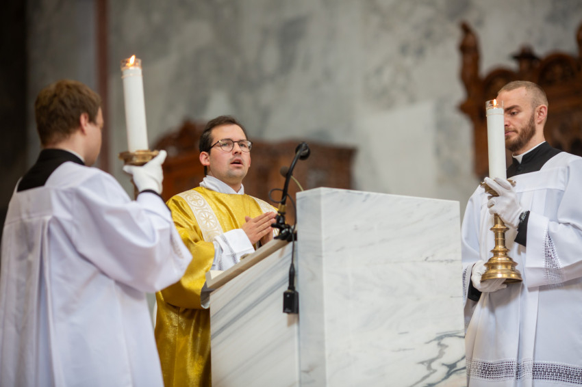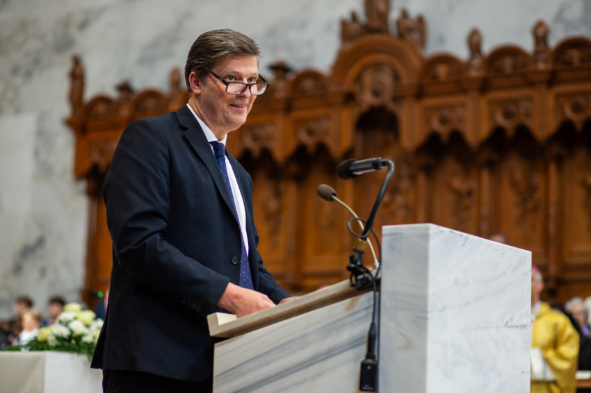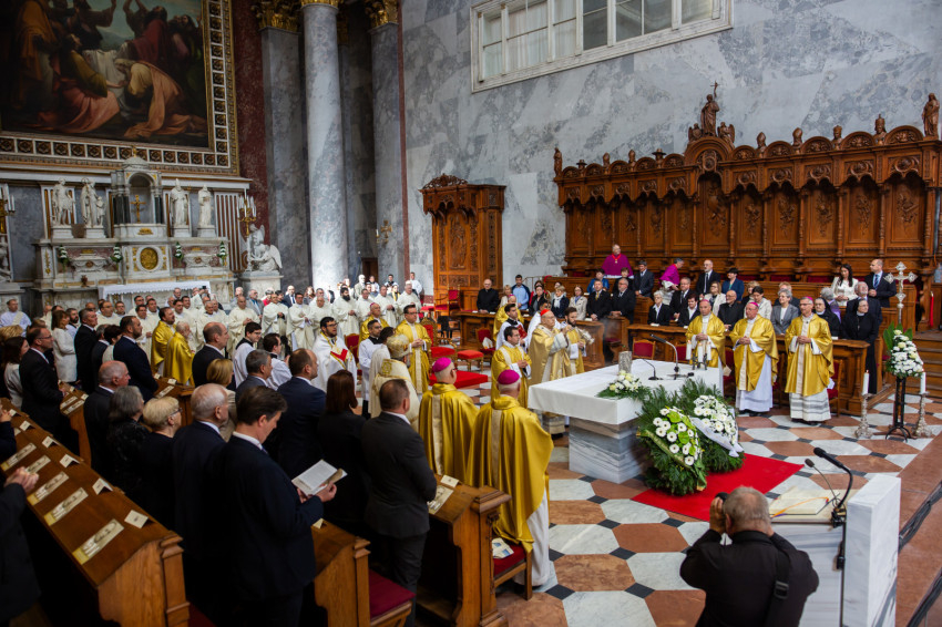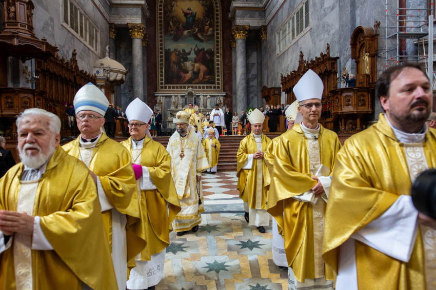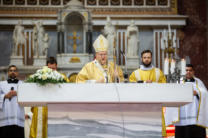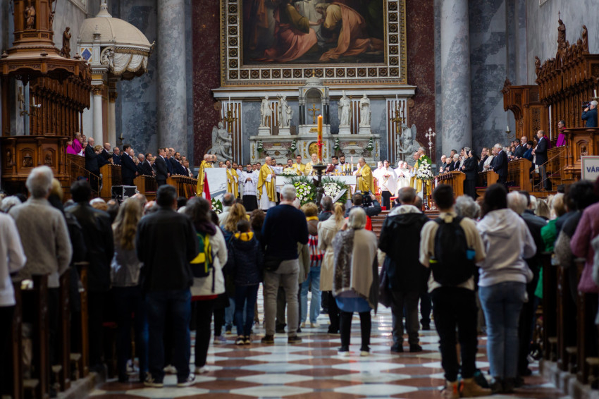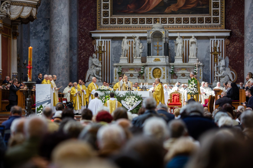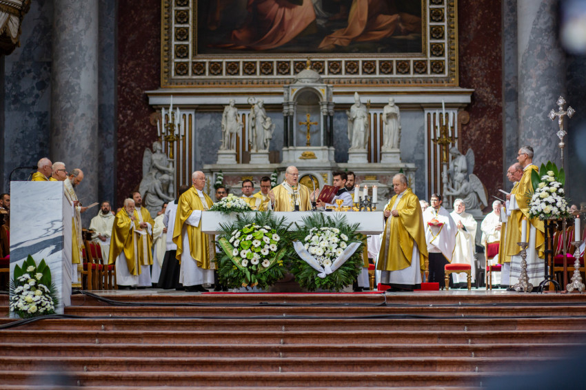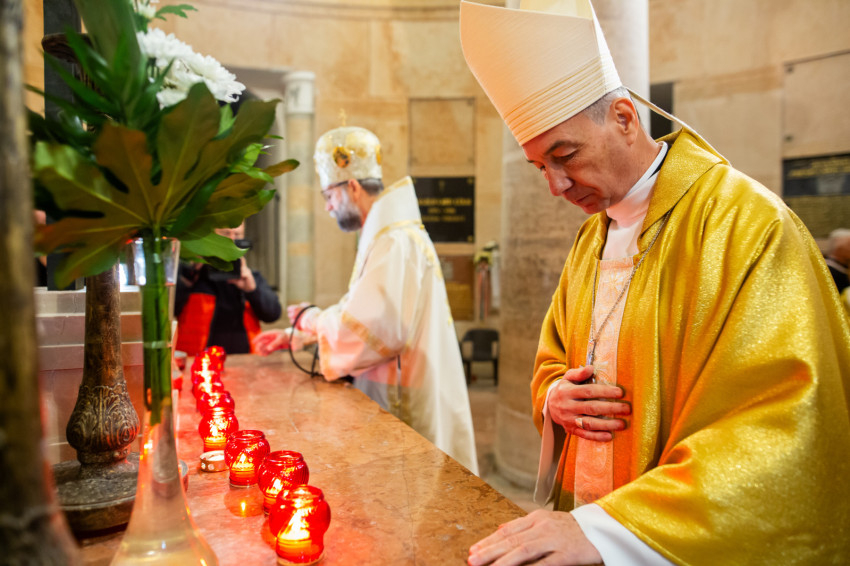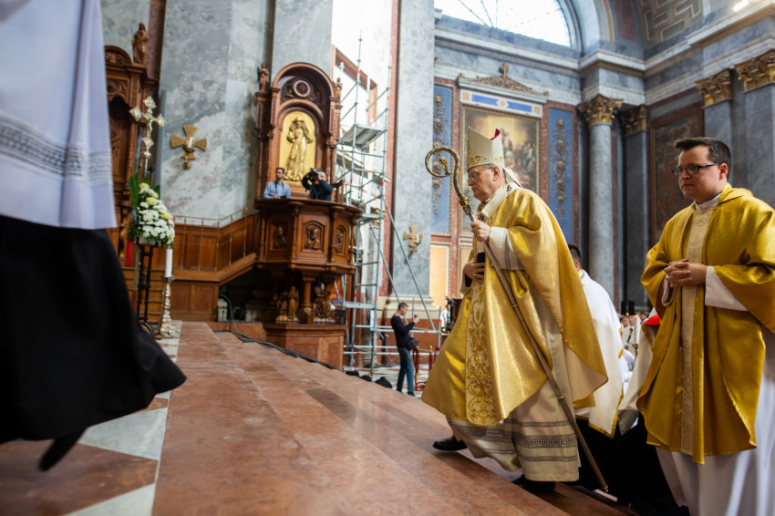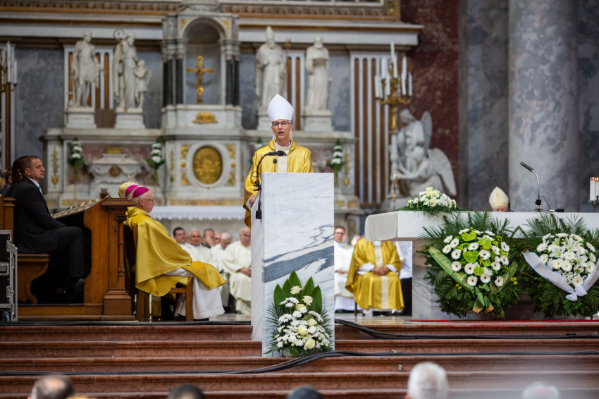 A mai napon Isten tiszteletreméltó szolgája, Mindszenty József lábnyomába lépünk itt az esztergomi bazilikában. Itt szentelték püspökké, és itt lett Esztergom érseke. Sírja köztünk van, de az ő útja sokkal messzebb vezetett.