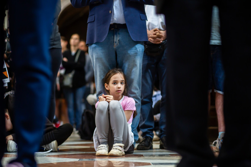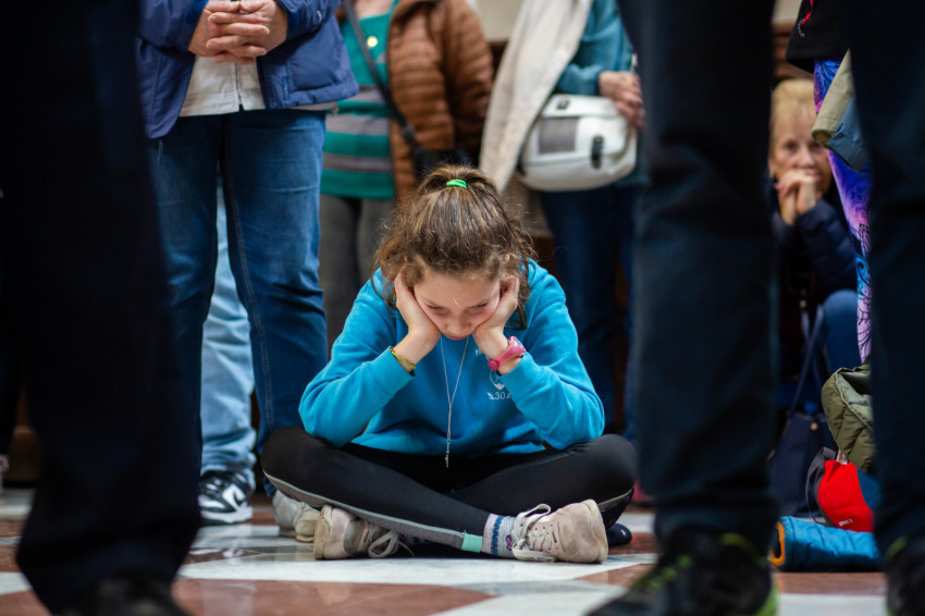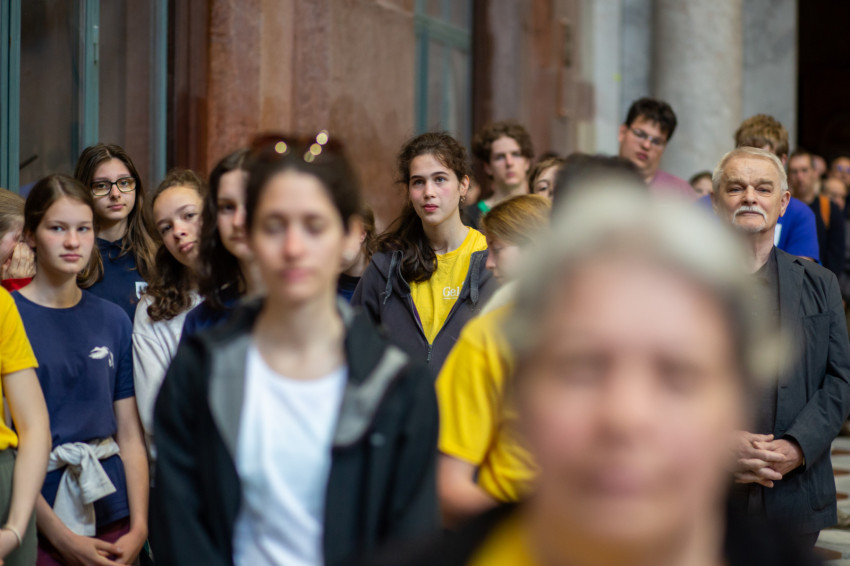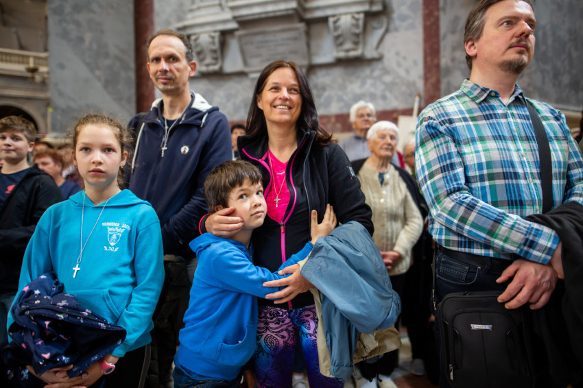 A Miatyánk és Üdvözlégy Mária imádságokat követően a Boldogasszony anyánk Mária-himnusz is itt, a bazilika altemplomában csendült fel.