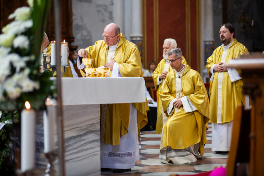 Erdő Péterrel az oltár mellett szolgált Bábel Balázs kalocsa-kecskeméti érsek, Ternyák Csaba egri érsek, Udvardy György veszprémi érsek, Kocsis Fülöp hajdúdorogi érsek-metropolita, Spányi Antal székesfehérvári megyéspüspök, Palánki Ferenc debrecen-nyíregyházi megyéspüspök, Varga Lajos váci segédpüspök és Martos Levente Balázs esztergom-budapesti segédpüspök.