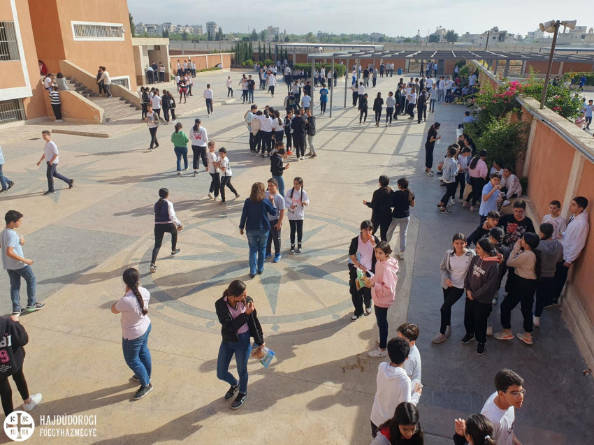 Jihane nővér a magyar segítségnyújtásnak emléket állító hatalmas tábla alatt áthaladva parkszerű, zöld kertbe vezet bennünket, melyet Magyarország parknak neveznek hálából a segítségnyújtásért. Gyakran hozzák ide a diákokat különböző alkalmakon, hogy a természet közelében legyenek. Sokuknak ez sem adatik meg az iskolán kívül, mivel betonrengetegben élnek, a környéket pedig súlyosan megviselte a háború, nincsenek parkok, játszóterek a közelben.