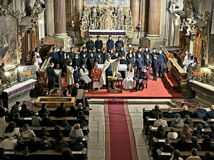 Molnár Lehel SchP egyetemi lelkész bevezetőjében a helyszínről, a piarista templomról elmondta: a kolozsvári jezsuiták építették, májusban ünnepelték felszentelésének 300. évfordulóját, és jövőre lesz 250 éve, hogy a piaristák átvették, folytatva az ifjúság nevelését. „Ez a zenei esemény lehet a 300 éve felszentelt akadémiai templom ünnepségeinek záróakkordja, és a 250 éve Kolozsvárra érkezett piaristák jubileumi évének nyitánya” – fogalmazott a piarista szerzetes.