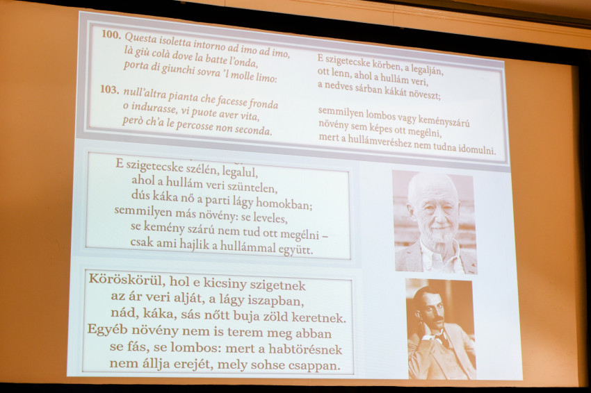 Ezt követően Nádasdy Ádám költő, egyetemi tanár – aki nyolcévnyi megfeszített munkával újból lefordította az Isteni színjátékot –, a Paradicsom ének magyar fordításáról tartott előadást. Kifejtette: a mű szerint halálunk után a lelkünk két helyre kerülhet. Az egyik a kárhozat, a másik az üdvösség. A kárhozatból nincs menekvés, ha a Pokolba kerülünk, végleg ott maradunk, szenvedésünk örökké tart. Az üdvösségnek két útja van. Ha valaki szentként élt, vagy mártírként, vértanúként halt meg a hitéért, akkor közvetlenül a Paradicsomba kerül. Nagyon ritka ez, de előfordul. Ha jót is és rosszat is tett – mint a legtöbb ember –, akkor a Purgatóriumba kerül. Nagyon fontos, hogy a Purgatórium nem a próbatétel helye, onnan csak felfelé, a Paradicsomba vezet az út. A kérdés az, hogy mennyi idő múlva, milyen szenvedések árán, de előbb-utóbb mindenki felkerül. A Purgatórium tehát a reménység tanyája, míg a Pokol a teljes reménytelenségé. Dante leírásában a Pokol és a Purgatórium is üzemszerűen működik, az más kérdés, hogy fikció az egész, hiszen irodalmi művel állunk szemben. Olyan, mint Verne Gyulától a Rejtelmes sziget. Tudjuk, hogy nincs ilyen sziget, de a könyv úgy van megírva, hogy létezik. A Pokol és a Purgatórium Dante látogatásától függetlenül működnek. Hasonló ez egy gyárlátogatáshoz, végigvezetik a helyszíneken, ő pedig mindent megtekint.