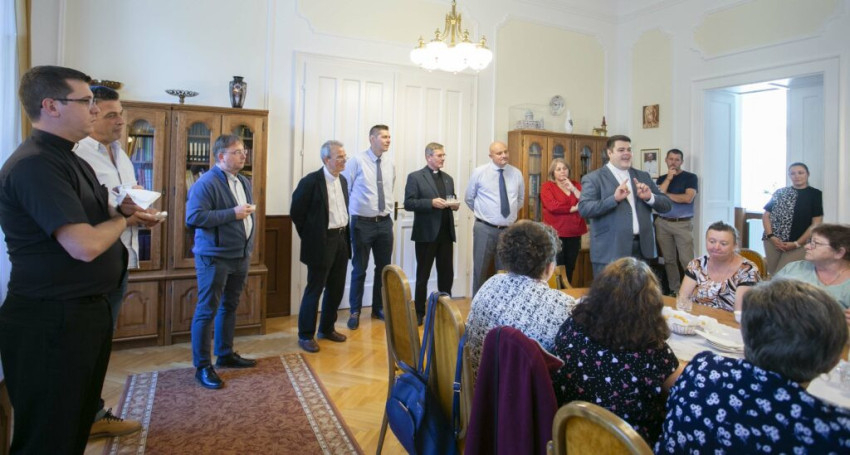 A szatmárnémeti munkatársakkal érkezett Illyés Csaba általános helynök, Melega Péter gazdasági helynök és a brazil származású Claudino José Cleiton püspöki titkár, a szatmári egyházmegye diakónusa.