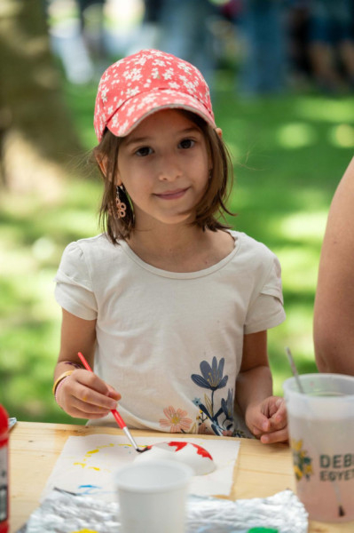 A roma közösségi ponton a Szent Miklós Görögkatolikus Diákotthon és Roma Szakkollégium munkatársai csillámtetoválással, gipszfestéssel és szerencsekerékkel várták a gyerekeket.