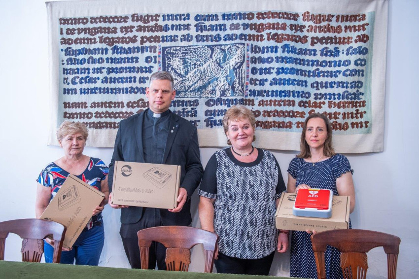 „Ott kell segítenünk, ahol az ember van, akár olyan élethelyzetben, amelyben életmentő lehet a gyors beavatkozás. Nem elég azonban a puszta jóakarat, van, amikor eszközre is szükség van, jelen esetben ezekre az orvosi műszerekre az újraélesztéshez. Nagy megtiszteltetés számunkra, hogy ezeket a defibrillátorokat mi kaptuk meg, és segíthetünk akár életet menteni velük az egyházmegye területén” – mondta a főpásztor.
