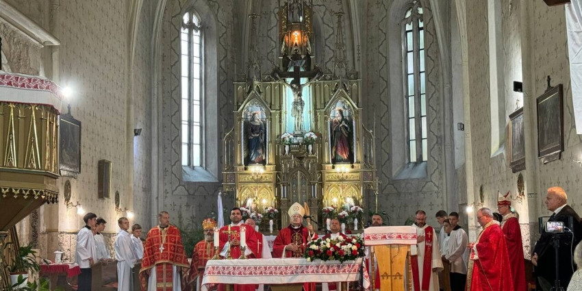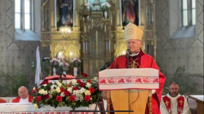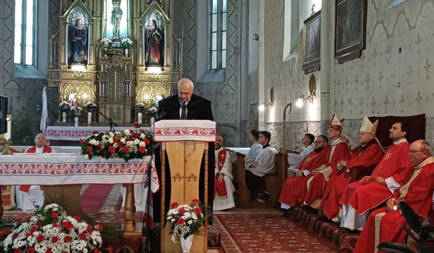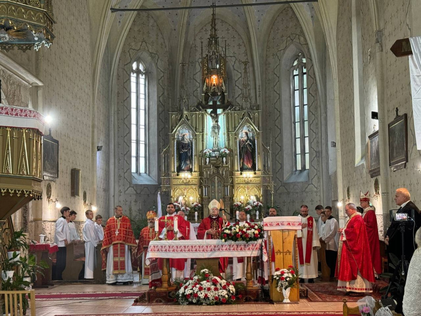 „Kedves testvéreim, nagyon szép templomotok van, és történelmileg is jelentős. Az, hogy a Szent Kereszt tiszteletére szentelték, rámutat arra, hogy az őseitek tudatában voltak annak, hogy az élet nem egy séta a tengerparton, hanem vannak nehéz időszakok, de minden fölött ott uralkodik a kereszt. Kívánom, hogy ez a közösség érje meg azt a napot, amikor a kereszt fénye a feltámadás fényét sugározza rátok, családotokra, az egész vérrel itatott ukrajnai földre. A politikusok is minél előbb eljussanak arra, hogy a kereszt fényében keressék a békés megoldásokat” – zárta beszédét az érsek.