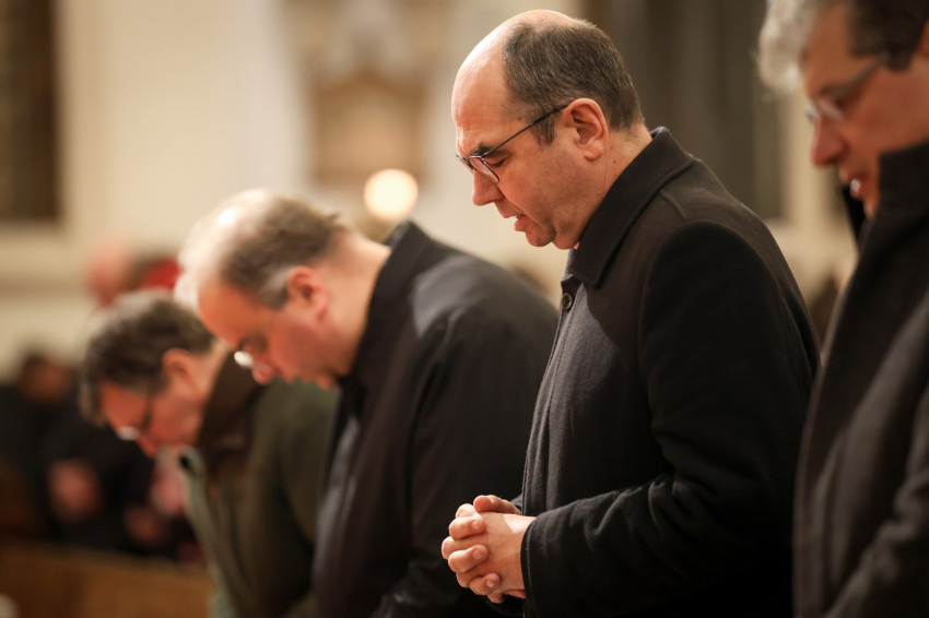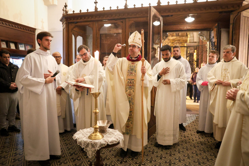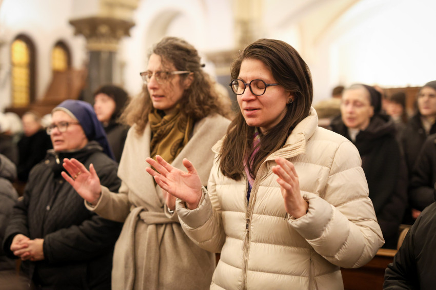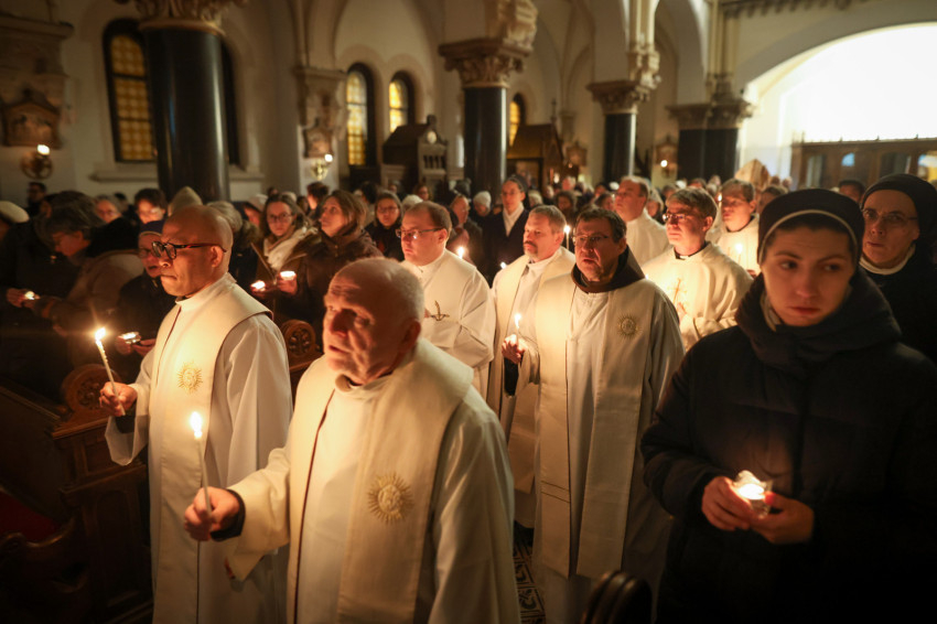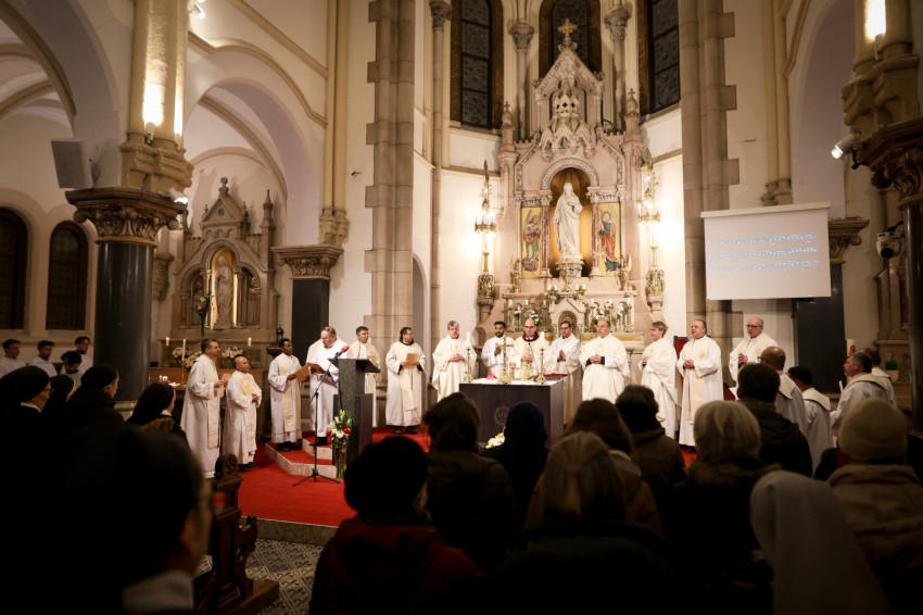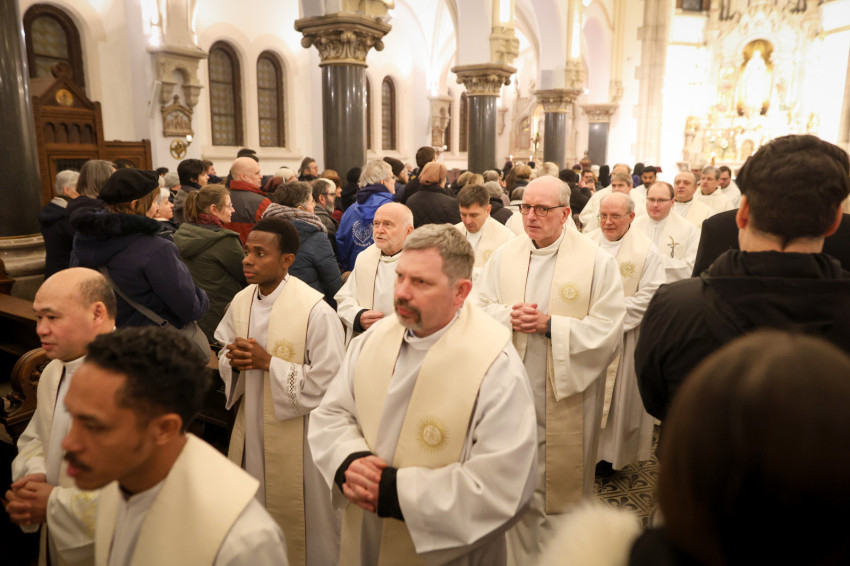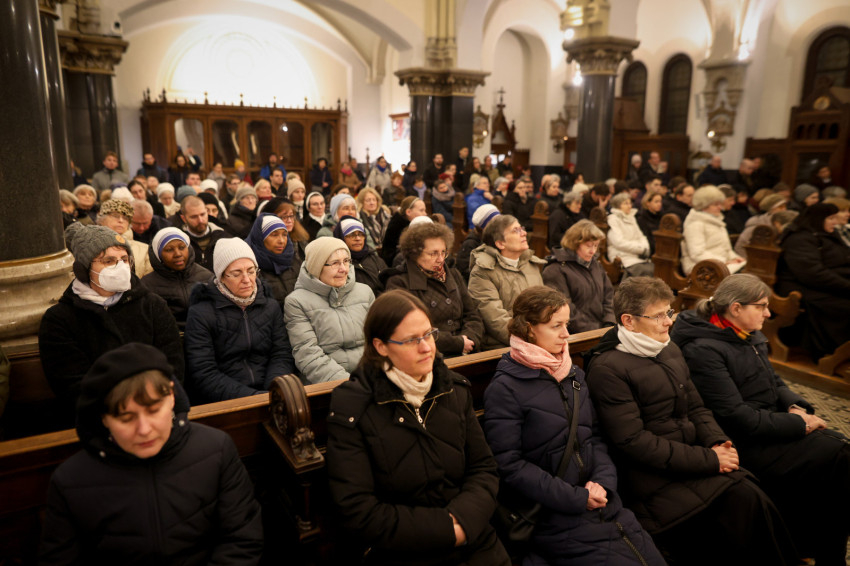 A szerzetesek találkozója a Jézus Szíve-templomban folytatódott, ami teljesen megtelt. Zsolozsmát imádkoztak, majd Székely János püspök mutatott be szentmisét. Ünnepélyes pillanat volt, amikor a szerzetesek égő gyertyákkal vonultak a Mária- és a Szent József-oltárhoz: gyertyák százai fejezték ki Krisztushoz tartozásukat, önátadásukat.