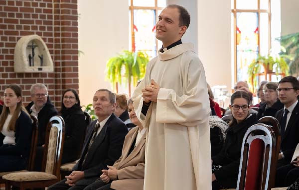 Kedves szentelendő testvérem, téged is megérintett Krisztus szeretete, és lángra gyújtotta a szívedet. Az ő szeretete viszontszeretetet élesztett benned iránta. Különleges kegyelem, hogy ezt már egészen kisgyermek korodban megtapasztaltad. Már akkor bekerültél az ő vonzásába, a mai szentmisében pedig a diakonátus rendjében részesülsz.